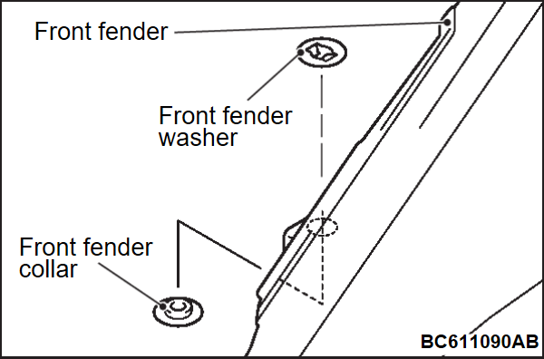 Fit the front fender collar to the front fender, and install the front fender washer to the front fender.