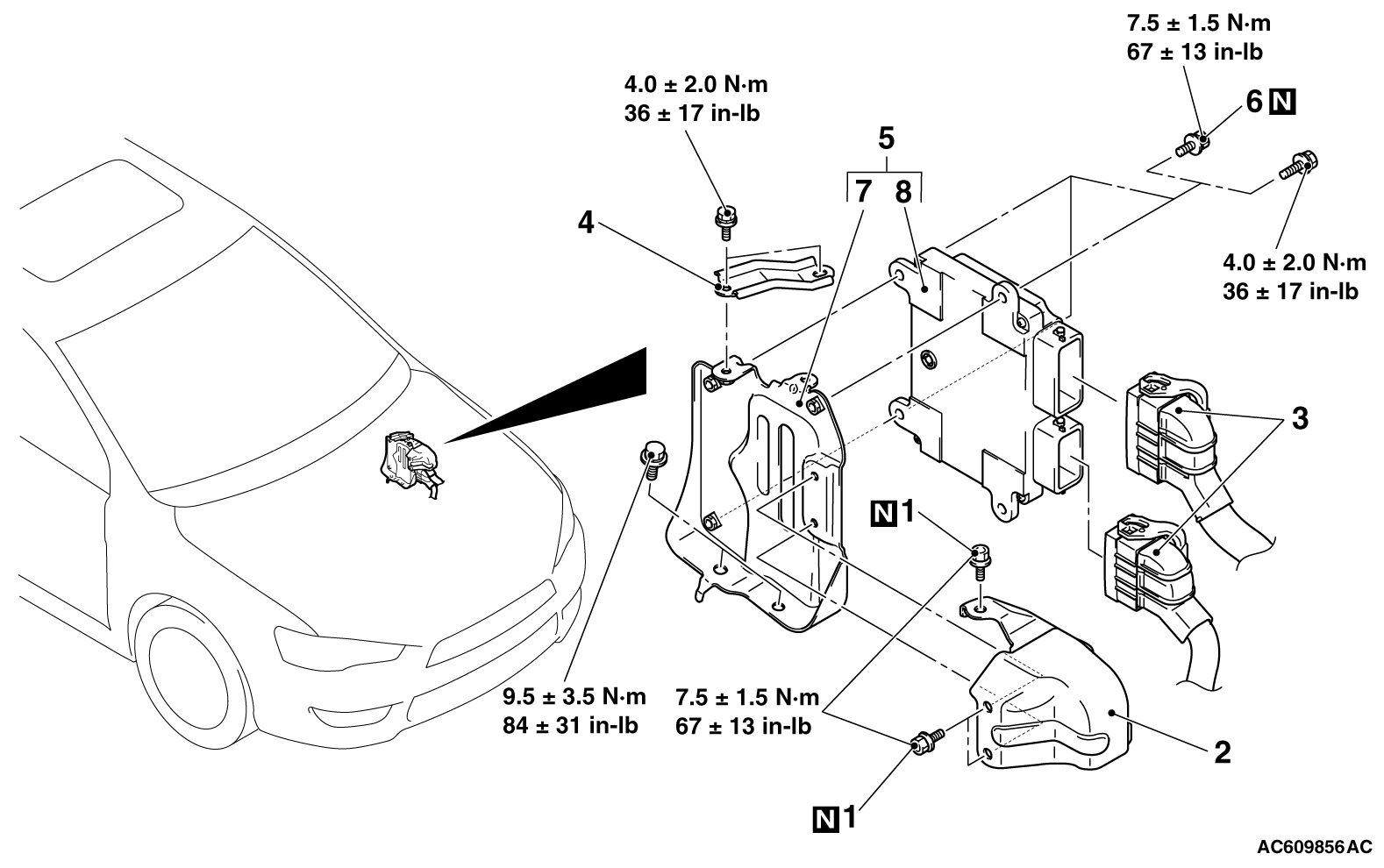 • When the ECM is replaced, do not replace the immobilizer ECU (WCM) or KOS-ECU simultaneously. When multiple ECUs are to be replaced, always replace only one ECU at a time and complete necessary ID registration using scan tool (Refer to GROUP 42B, Diagnosis - ID Codes Registration Judgment Table ) <Vehicle with KOS installed> or (Refer to GROUP 42C, Diagnosis - ID Codes Registration Judgment Table ) <Vehicle with WCM installed>.