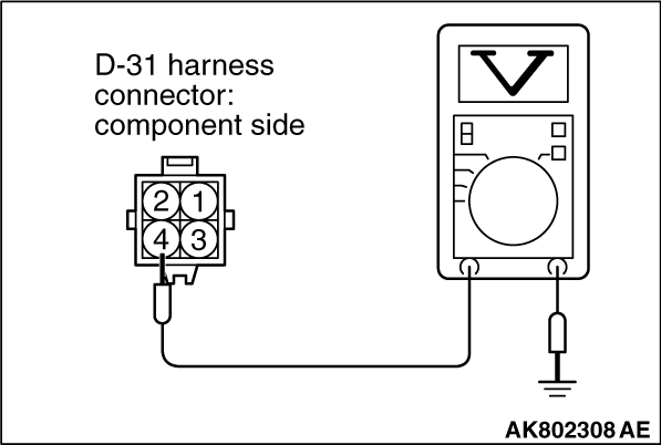 (1)Disconnect the connector D-31 and measure at the harness side.