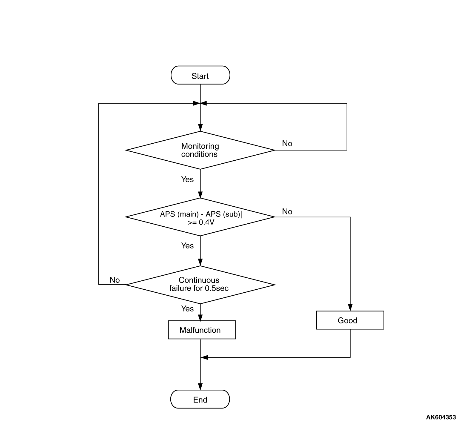 - Range/performance error of accelerator pedal position sensor (main and sub) circuit