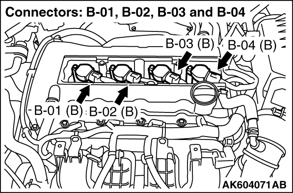 connector B-01 (terminal No. 3) at ignition coil 1.