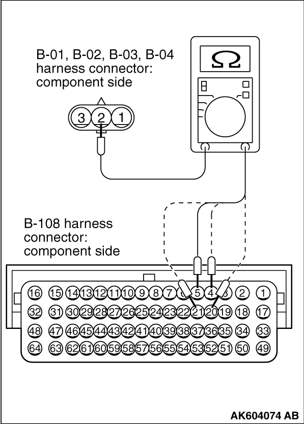B-02, B-03 and B-04 (terminal No. 1) and ground because of open circuit or harness damage. Then