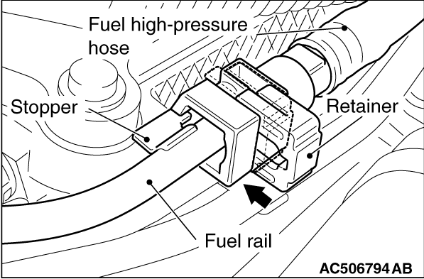 2.Securely insert the fuel rail stopper into the fuel high-pressure hose connector groove