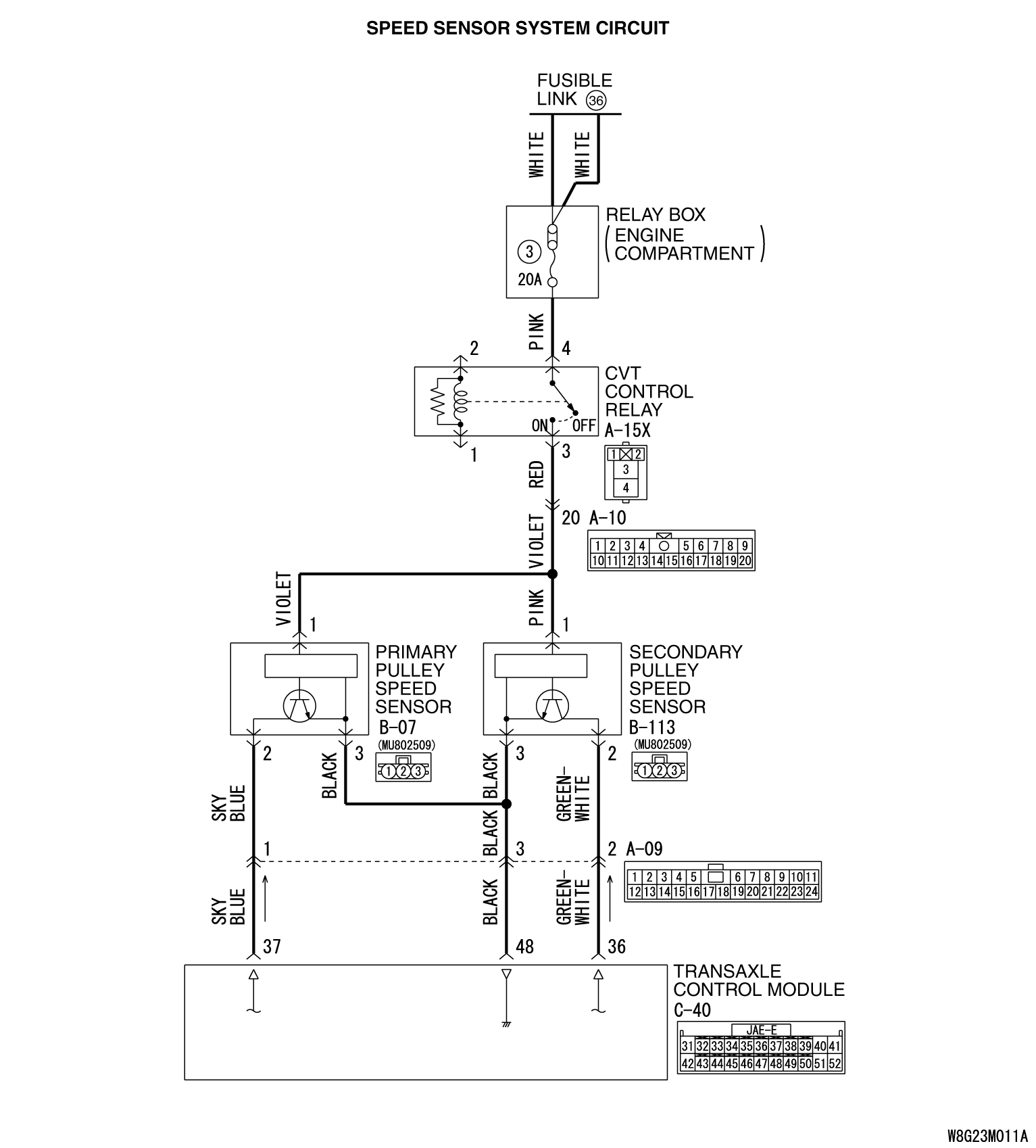 STEP 2. Use an oscilloscope to measure the wave patterns of the primary pulley speed sensor and secondary pulley speed sensor. |