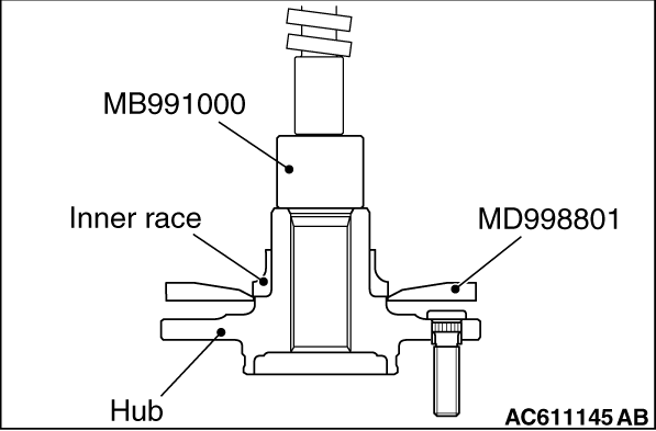 1.Use special tools MD998801 and MB991000 to remove the wheel bearing inner race (outside) from the hub.