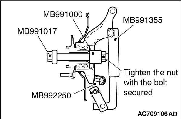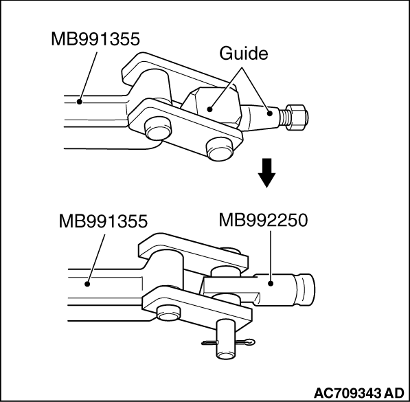 1.Replace special tool MB992250 with a guide of special MB991355 as shown in the figure.