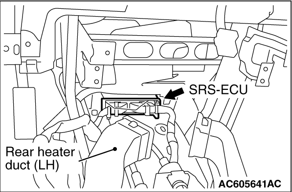 1.Check the SRS-ECU case and brackets for dents, cracks or deformation. 2.Check the connector for damage, and the terminals for deformation. 3.Check the installation of the SRS-ECU and its bracket.
