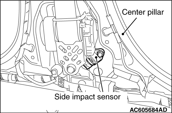 1.Check that there is no bending or corrosion in the center pillar. 2.Check that there is no denting, breakage or bending of the side impact sensor. 3.Check that there is no harness crimping, connector damage or bent terminals.