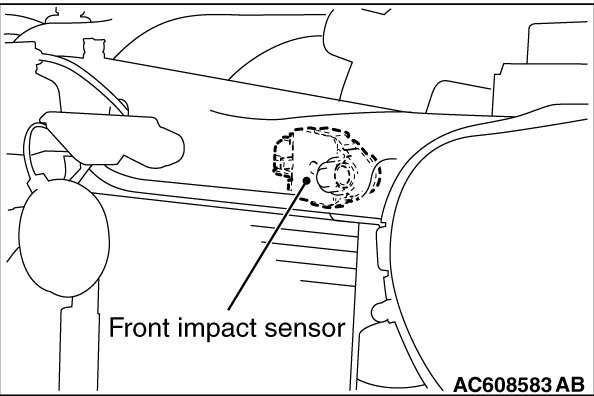 1.Check the headlight support panel upper for distortion and rust. 2.Check the front impact sensor for dents, cracks, deformation or rust. 3.Check the front impact sensor wiring harness for binding, check the connector for