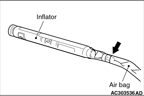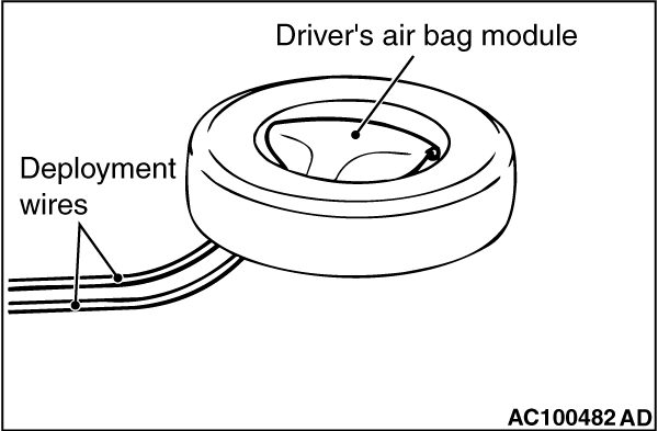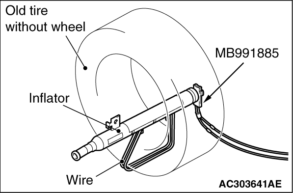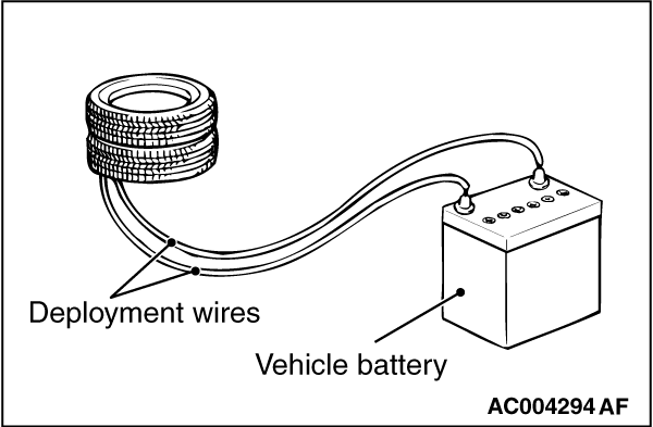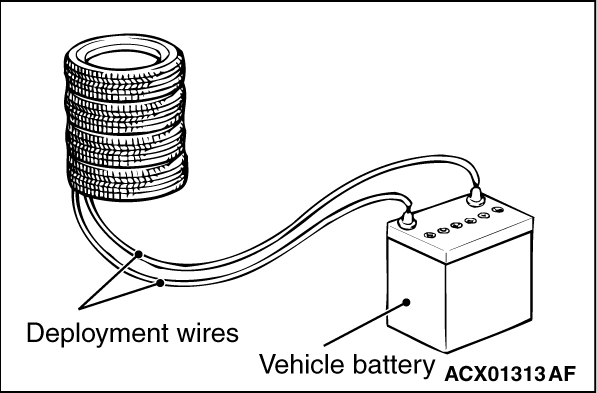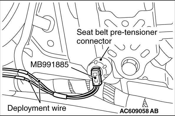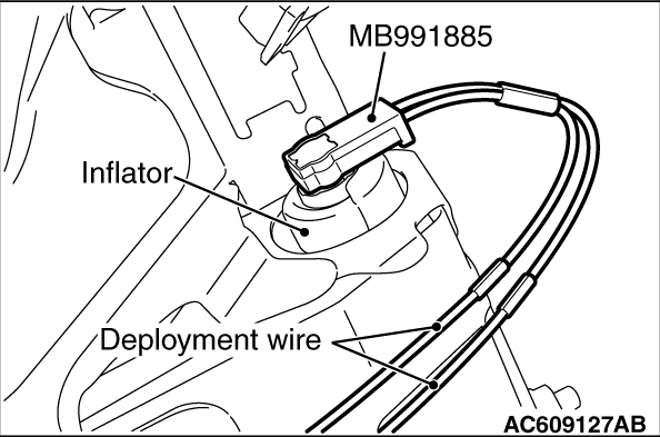 6.Connect the special tool MB991885 to the inflator, and then pull out the deployment wire