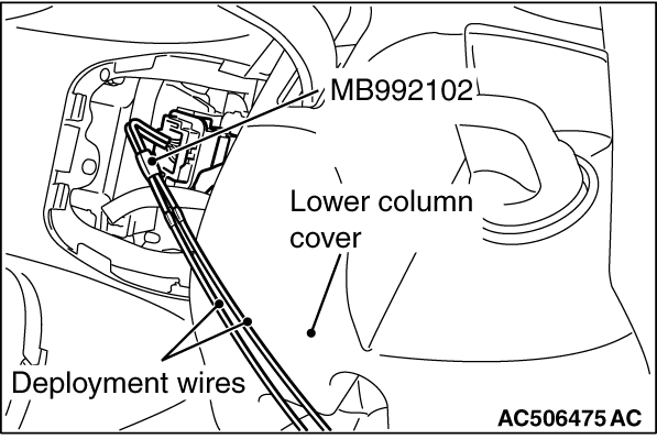6.Connect the special tool MB992102 to the driver’s air bag module, and then pull