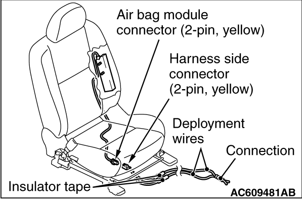 the two pins of side air bag module connector are automatically shorted. This prevents the unintentional deployment