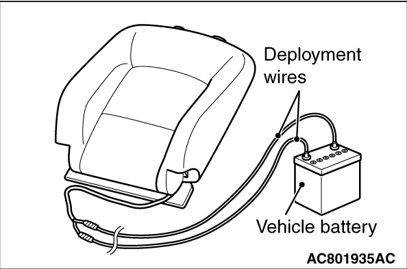 the battery (which has been removed from the vehicle) to deploy the air bag. 8.Discard the deployed side-air bag module as specified in Deployed Air Bag Module and