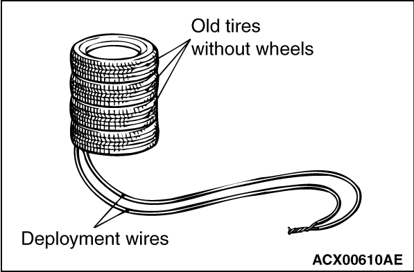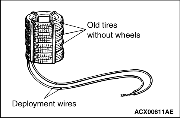 4.Connect the special tool MB991885, which the deployment wires is attached to, to the