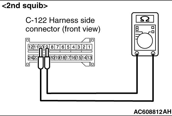 terminals 5, 6 <1st squib> or 9, 10 <2nd squib> and the