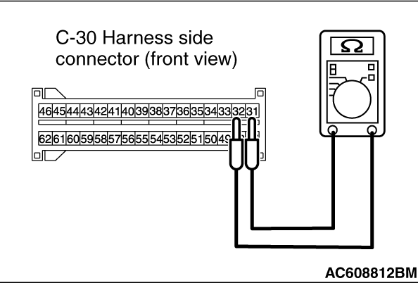 (5)Check for continuity between C-30 harness side connector terminals 31 and 32. It should be an open circuit.