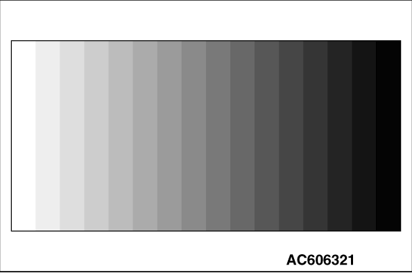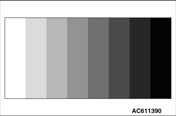 3.When "Enter" is pressed on the navigation unit joystick while the eight color bars are shown, gray scale will be displayed with a 16-step gradation.