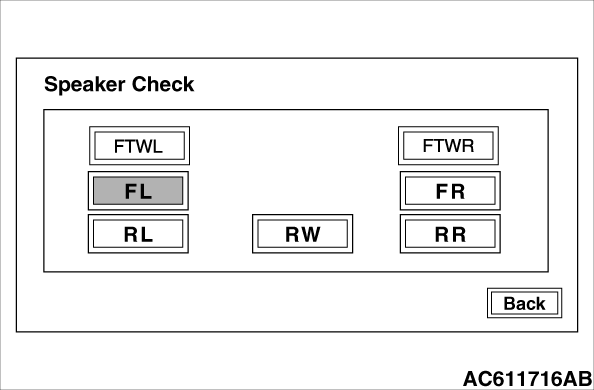 • During the test, only the selected speaker sounds. If "Back" is selected during the test, the test tone will disappear.