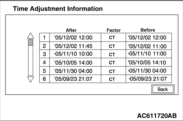 1. Select "Time Adjustment Log" on the "Versions Log Information" screen.