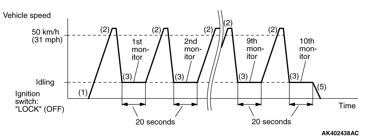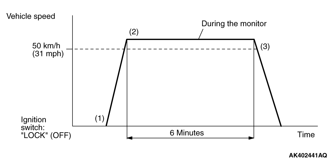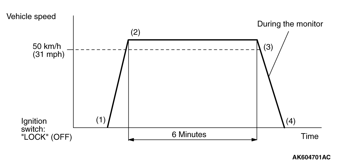 2. Drive the vehicle at more than 50 km/h (31 mph) for 30 seconds. (During the monitor)