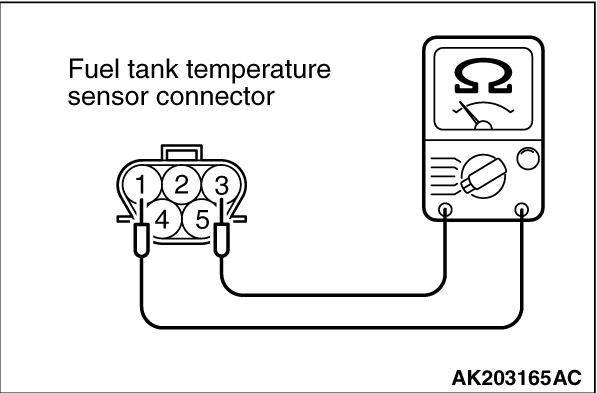 (2)Measure the resistance between terminal No. 1 and No. 3 of the fuel tank temperature sensor. Standard value: