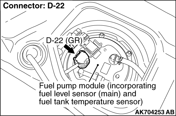 (1)Disconnect the fuel tank temperature sensor connector D-22.