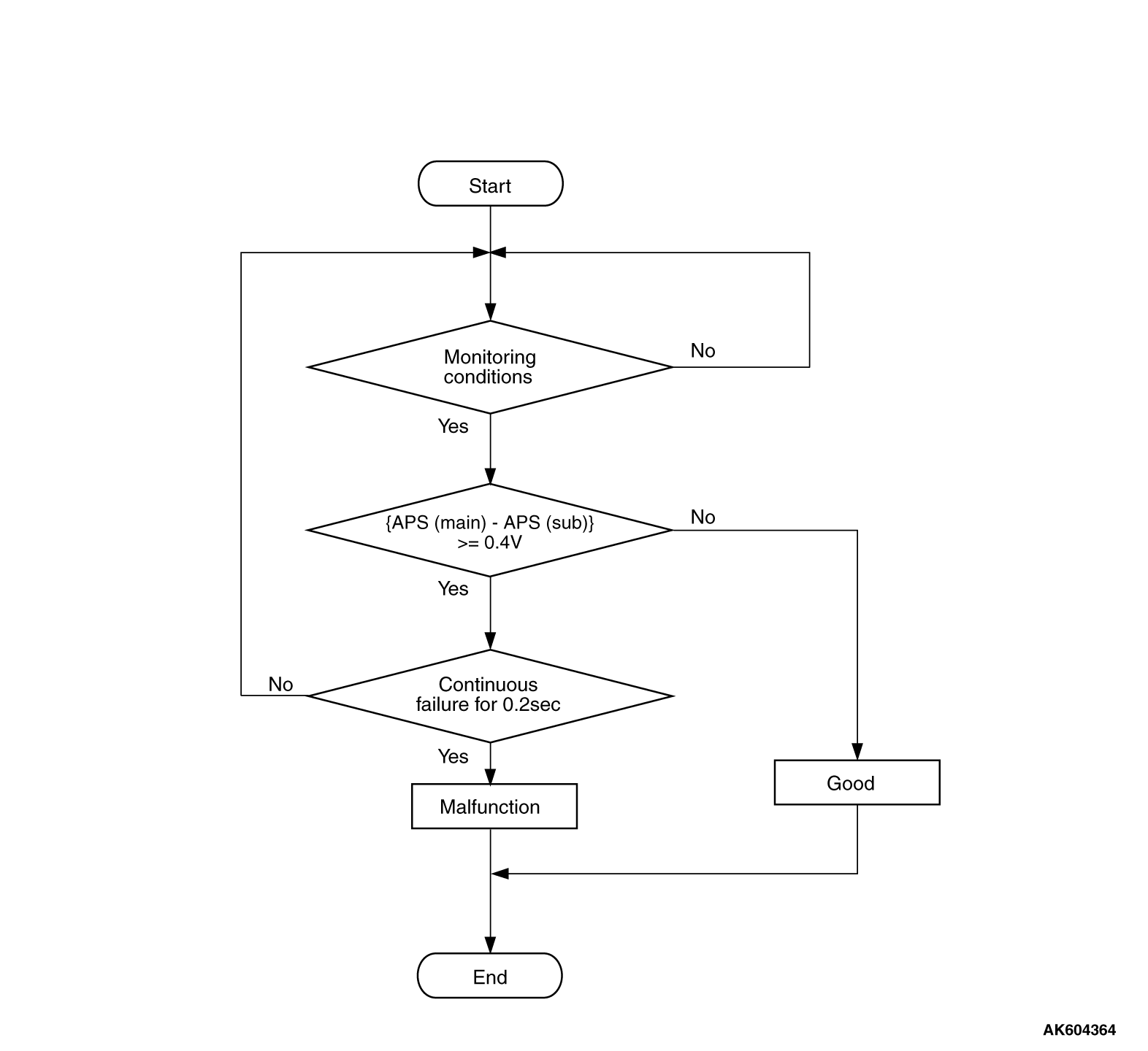 pedal position sensor (sub) voltage - accelerator pedal position sensor (main) voltage].