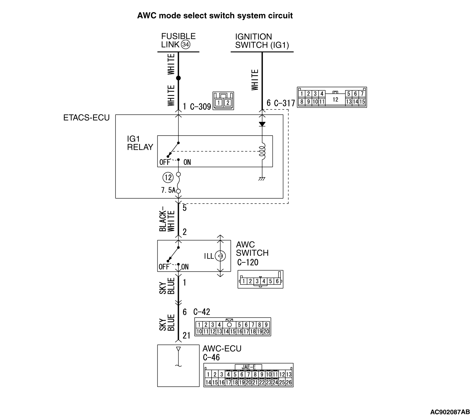 STEP 3. Intermediate connector, AWC-ECU connector, AWC switch connector check: C-42, C-46, C-120 |