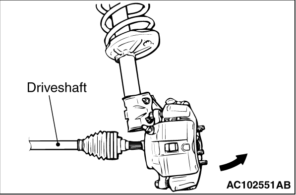 2.While pulling the lower side of the brake disk toward you, remove the driveshaft assembly from the hub.