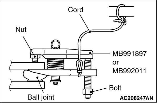 Install special tool MB991897 or MB992011 as shown in the figure.