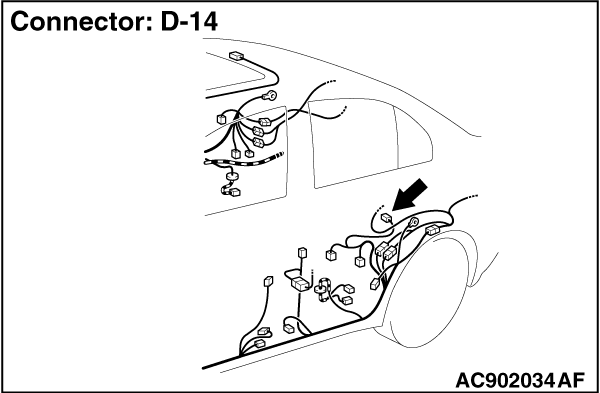 STEP 6. Check KOS-ECU connector C-05 and receiver antenna assembly connector D-14 for loose, corroded or damaged terminals, or terminals pushed back in the connector.