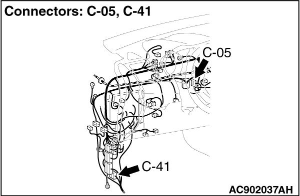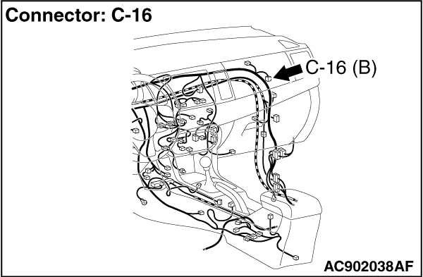 note Also check joint connector (6) C-16 and intermediate connector C-41 for loose, corroded, or damaged terminals, or terminals pushed back in the connector. If joint connector (6) C-16 and intermediate connector C-41 is damaged, repair or replace the damaged component(s) as described in GROUP 00E, Harness Connector Inspection .