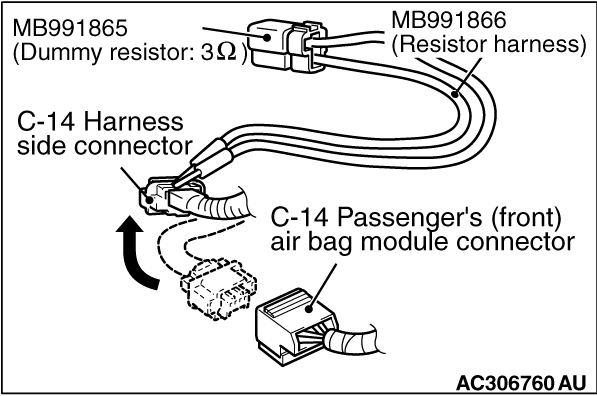the passenger’s (front) air bag module connector C-14 to short the squib circuit.