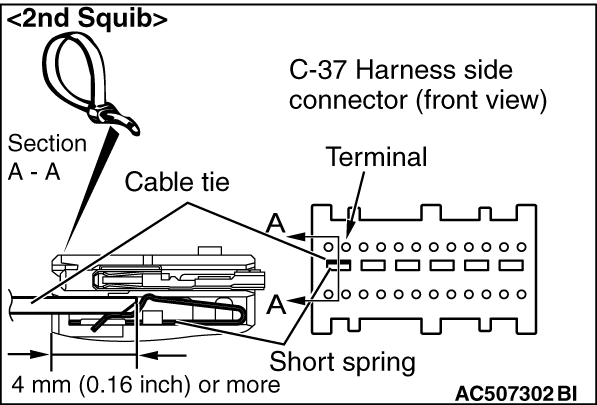 squib> or terminal No.3 and 4 <2nd squib>) by backprobing. (6)Connect the negative battery terminal. (7)
