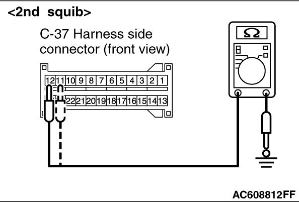 squib> or 11 and 12 <2nd squib>, and body ground. It should be an open circuit.