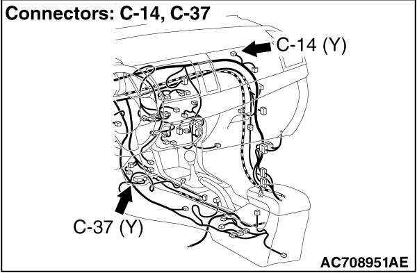 Insert special tool MB991866 into the harness side connector C-14 (terminal No.1 and 2 <1st