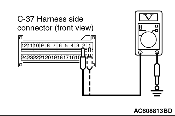 (7)Measure the voltage between C-37 harness side connector terminals 1, 2 and body ground. Voltage should measure 1 volt or less.