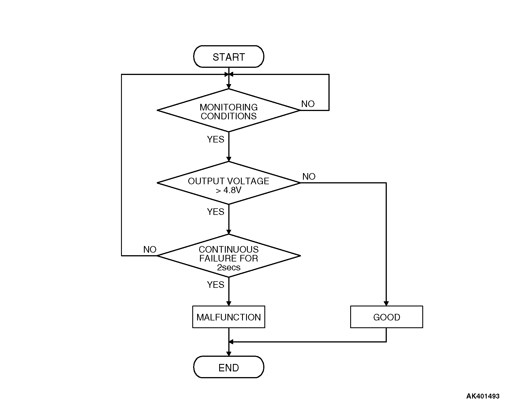• The ECM <M/T> or PCM <A/T> checks whether the voltage is within a specified range. In addition, it checks that the voltage output does not become too high while the engine is at idle.
