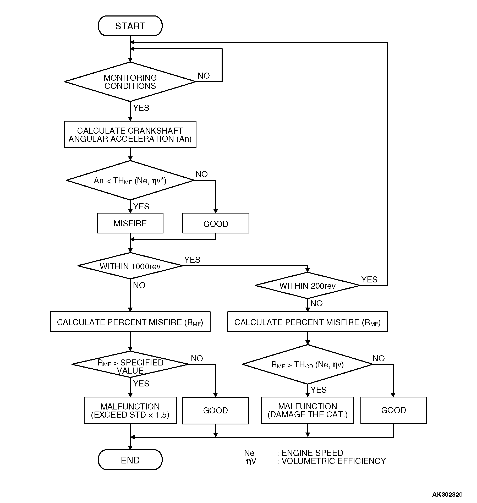 Judgement Criteria (change in the angular acceleration of the crankshaft is used for misfire detection).