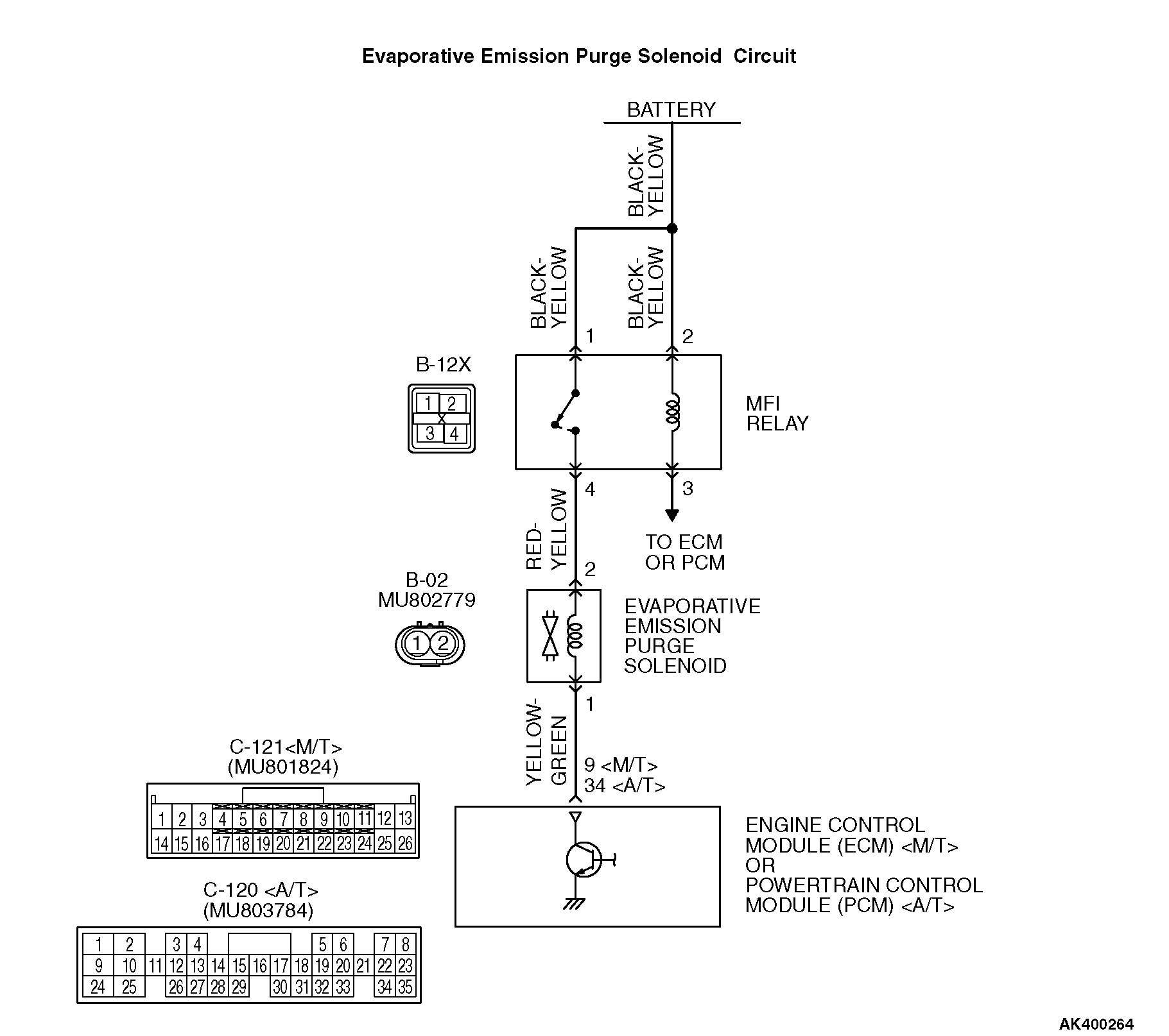 • Power to the evaporative emission purge solenoid power is supplied from the MFI relay (terminal No. 4).
