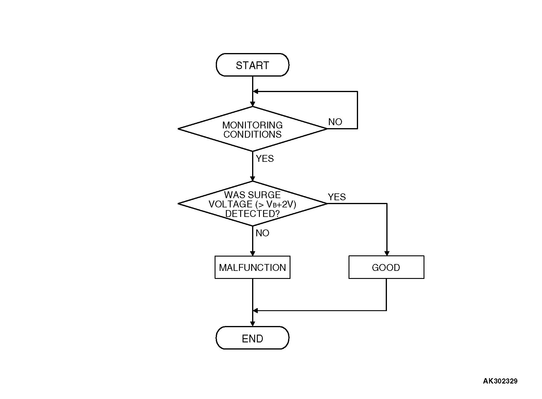 • If a surge current is not generated in the coil after the evaporative emission purge solenoid has been actuated, an open circuit is determined to have occurred. MONITOR EXECUTION