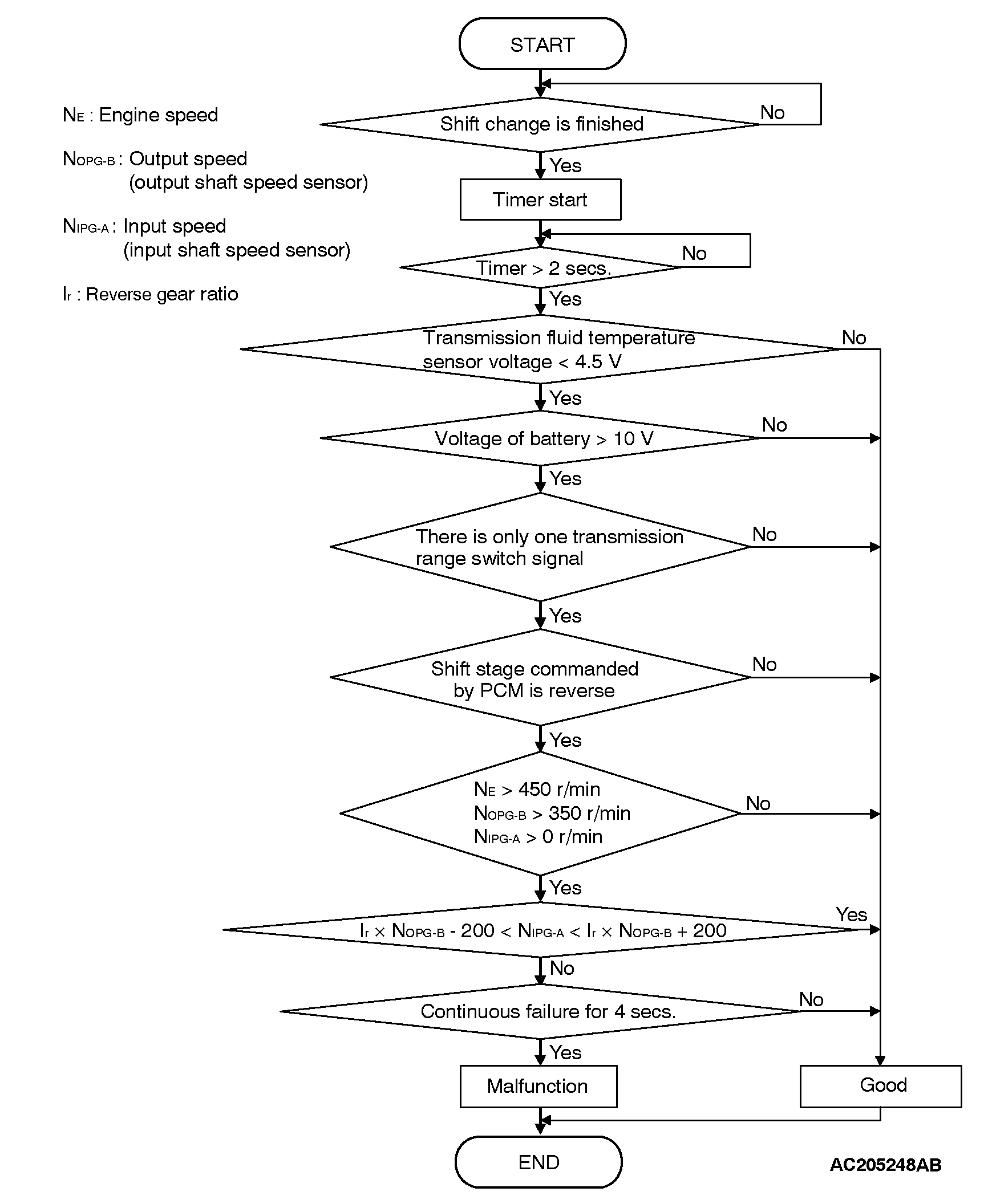 • A/T control relay LOGIC FLOW CHARTS (Monitor Sequence) <DTC 43 (P0733)> DTC SET CONDITIONS <DTC 43 (P0733)>