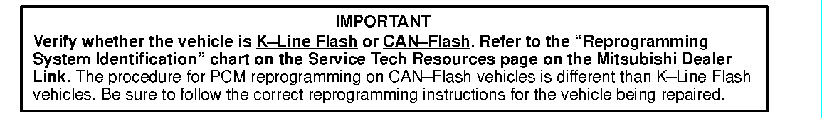 DO NOT DISTURB THE HARNESS CABLES OR CONNECTIONS. INTERRUPTION DURING THE PROGRAMMING PROCESS COULD CAUSE THE PCM TO LOSE DATA OR PREVENT FUTURE PCM REPROGRAMMING.