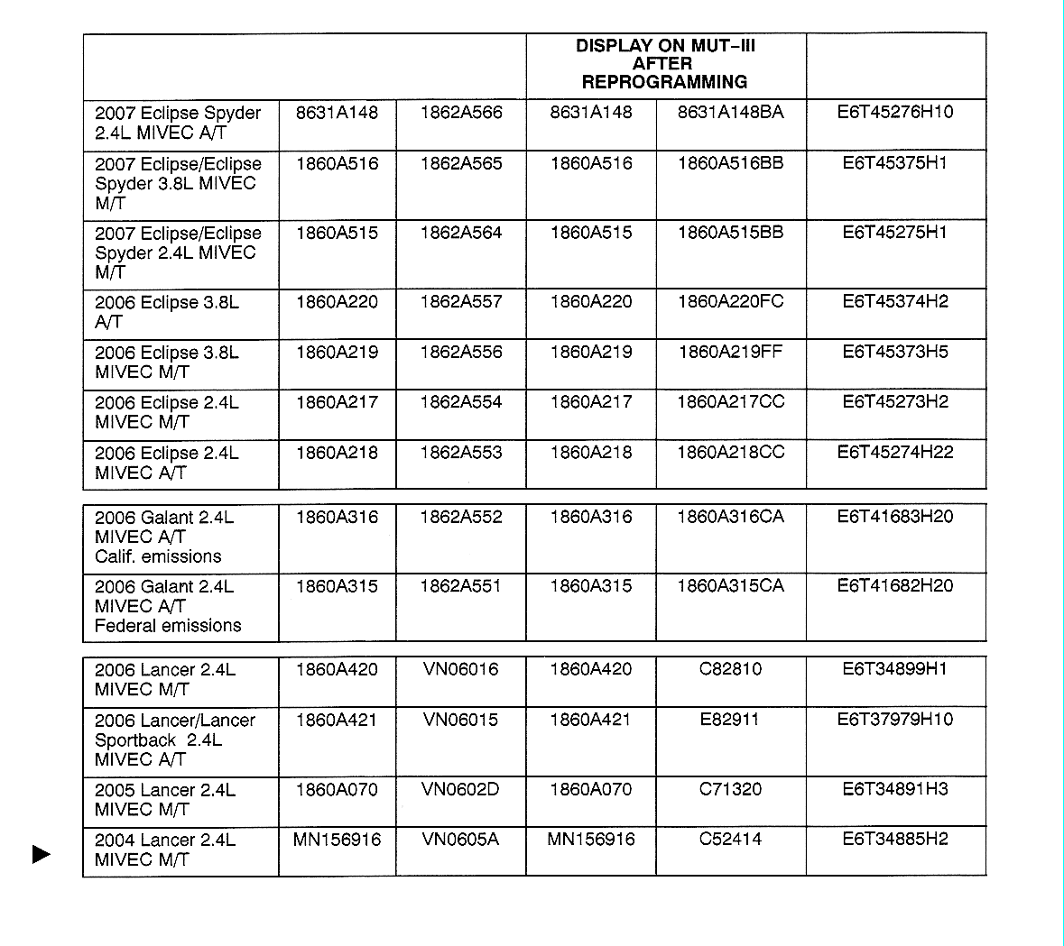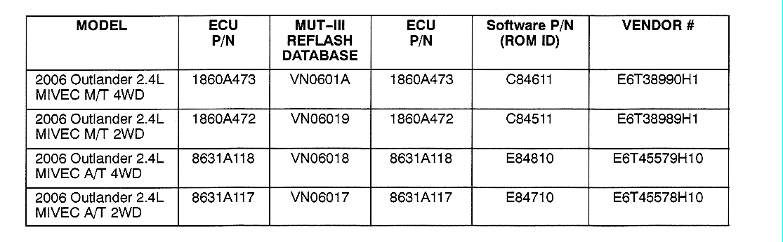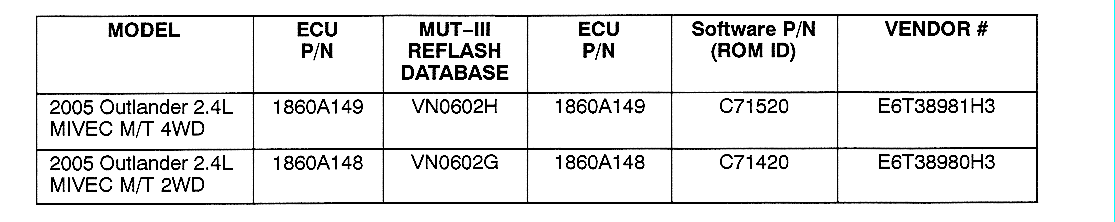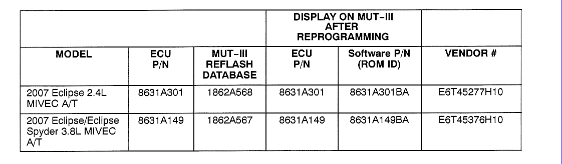 (If more than one row is displayed in the table, select the appropriate ECU part number.)